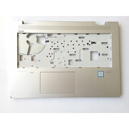 Upper casing for HP Probook 640 G4 laptops, full threads, has a slight dent on the lower left corner and a crack in the hinge cover (photos 3 and 4), otherwise unbroken, touchpad functional.