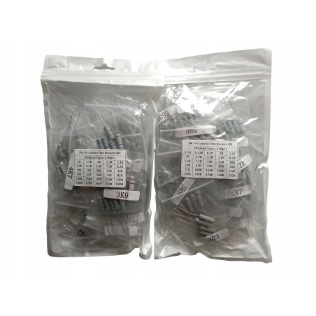 Set of 3W resistors, 60 different values ranging from 0 to 820 kΩ, 5% tolerance, 5 of each value, totalling 300 resistors.